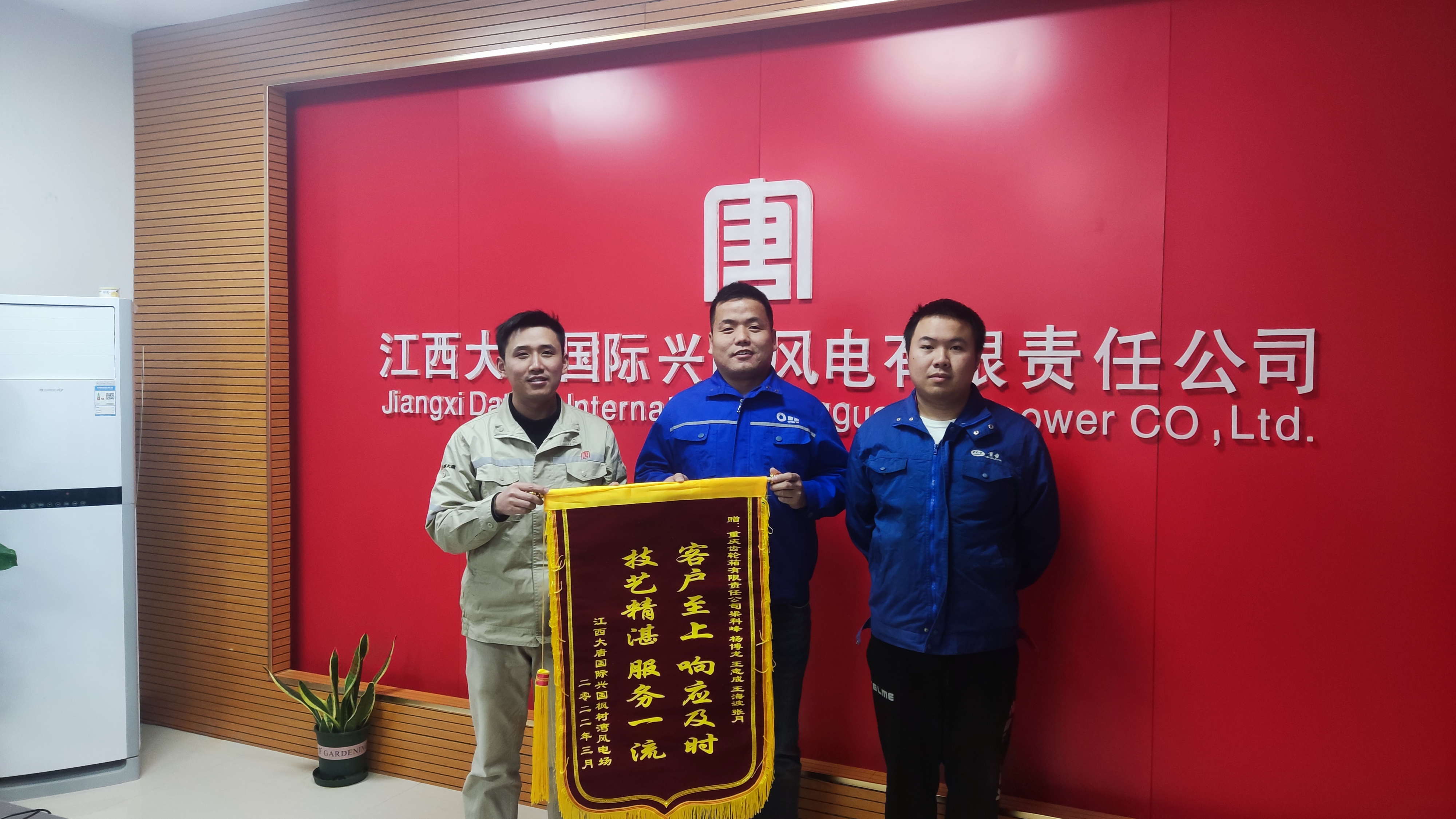2022年3月8日,重齒公司獲得江西大唐云峰嶂風電場贈予錦旗一面。錦旗寫道:客戶至上、響應及時,技藝精湛服務一流。這短短的16個字包含了梁科峰、楊博龍等五名運維同志連續多天的汗水和辛勞。在極端天氣凍雨影響,道路結冰、設備無法進場作業等困難面前,他們各司其職,加班加點,用最短時間圓滿完成消缺工作。他們辛勤付出、不辭辛苦、任勞任怨的工作精神,把業主的需求放在第一位的工作態度,得到了業主的高度認可,也為公司實現首季開門紅匯聚了強勁的精神力量。