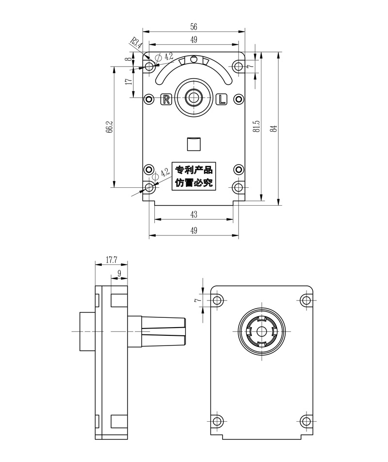 1、本產(chǎn)品適配不減速電機,配帶下開孔應(yīng)急鑰匙。